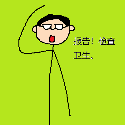 今天和昨天一样。不过我回班时,我口误说成了:“报告!检查卫生。”,应该说是:“报告!”。