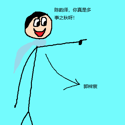 一旁的郭梓宸是5组的。他可以免作业,就来嘲笑我:“哈哈!陈韵泽,你真是多事之秋呀!”