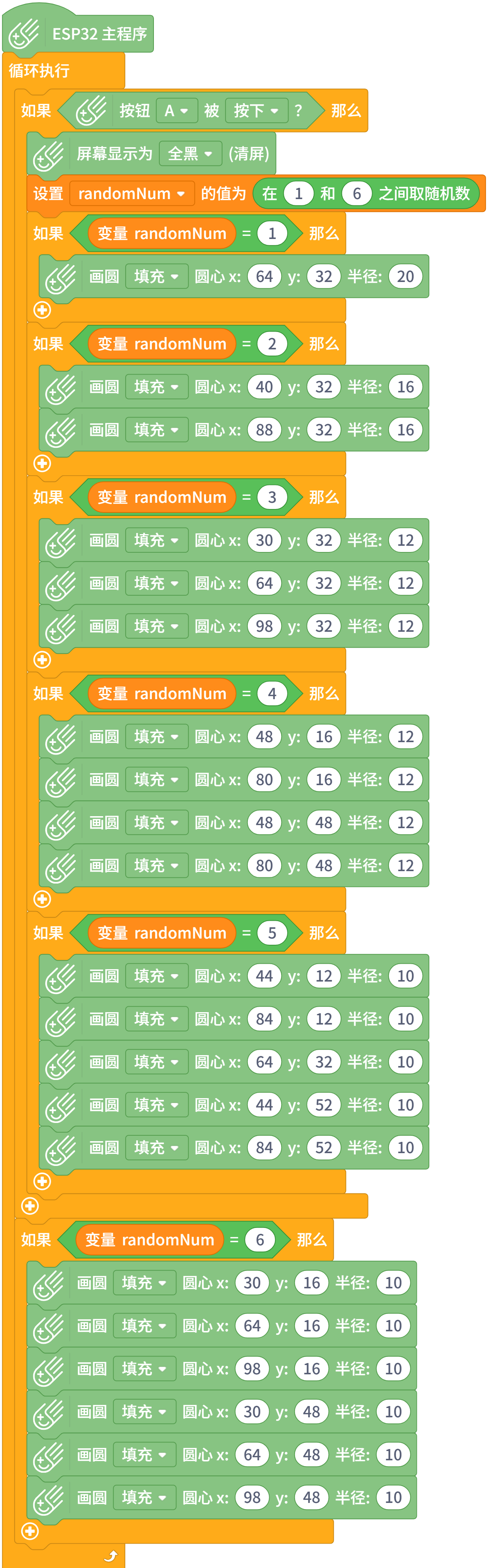 于是,我编了一个色子游戏程序,上传到了掌控板上。